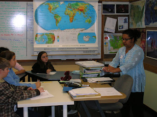 In order to give students an insider’s perspective, Kumar’s mom, Rinku, visited the 6th grade to share the artifacts and rituals of puja (worship) in Hinduism. Students viewed artifacts and icons representing different deities, and the class ended with them enjoying traditional sweets.